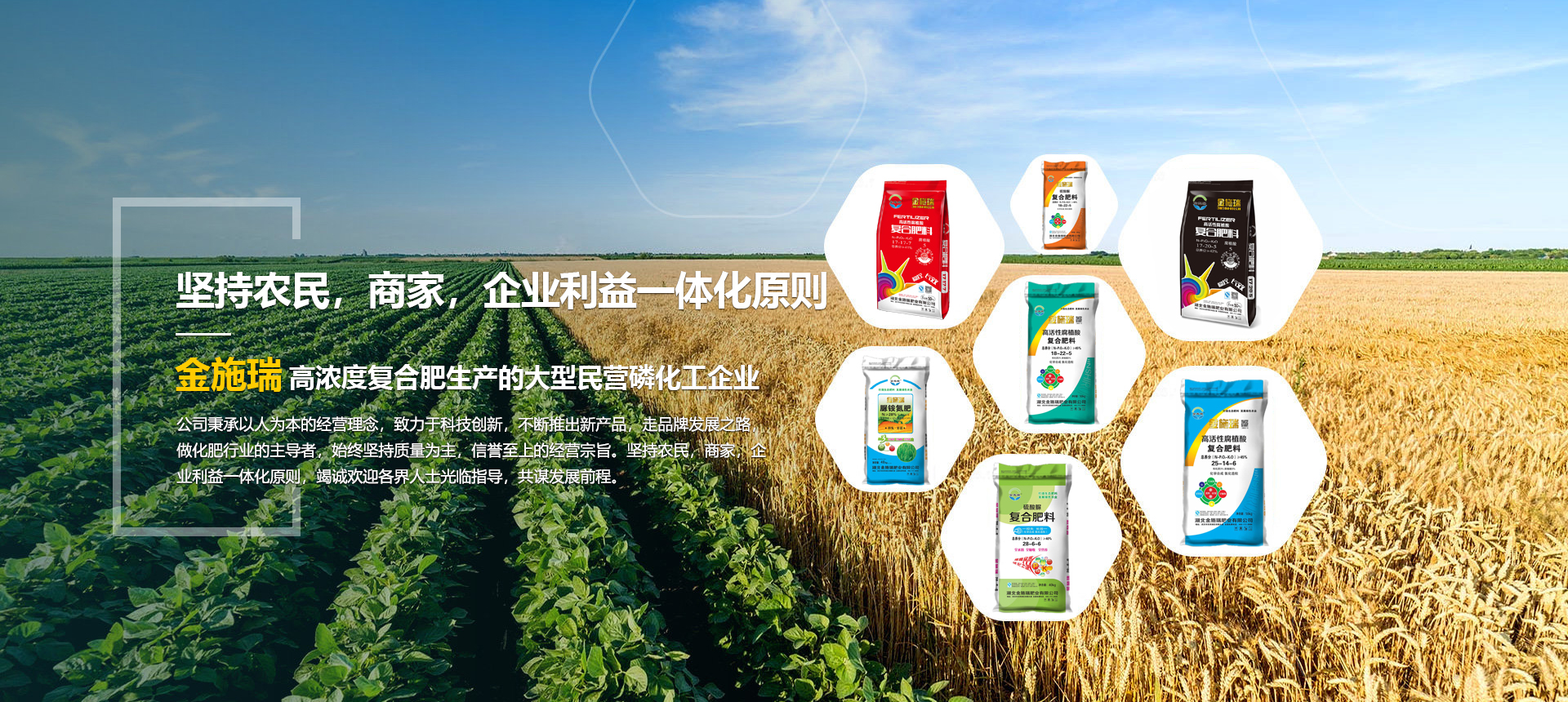 湖北金施瑞肥業(yè)有限公司是一家以生產(chǎn)高濃度復(fù)合肥為主導(dǎo)產(chǎn)品的大型民營磷化工企業(yè),在湖北、河南等地均建有大型的現(xiàn)代化生產(chǎn)基地。根據(jù)各地的土壤情況不同由本公司專業(yè)的研發(fā)機構(gòu)專門為各地區(qū)研制不同配方的化肥,真正做到測土配方施肥。
